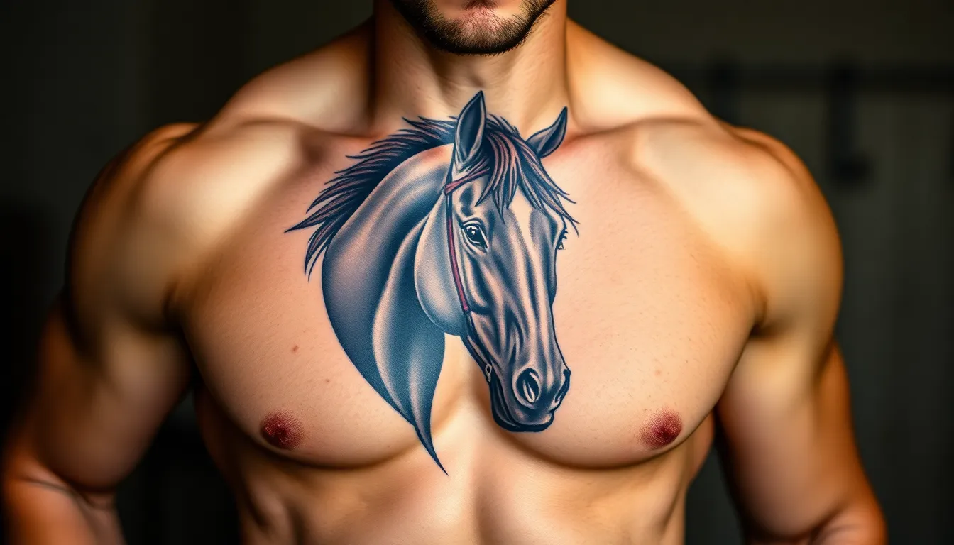 Chest placements offer expansive canvas space that’s perfect for detailed horse portraits and dramatic scenes. Men often choose this location for powerful horse head designs that capture intense emotion and nobility. The broad, flat surface accommodates intricate shading techniques and rich color work that brings realistic horses to life.